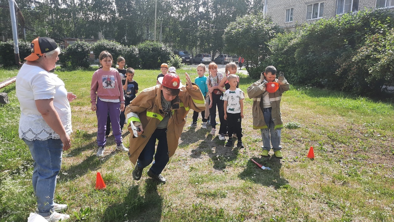 Атмосфера веселья продолжилась в подвижных играх, где две команды соревновались в навыках настоящих пожарных. Ребята с азартом одевали пожарное обмундирование и "тушили огонь", демонстрируя свою силу и сплоченность!