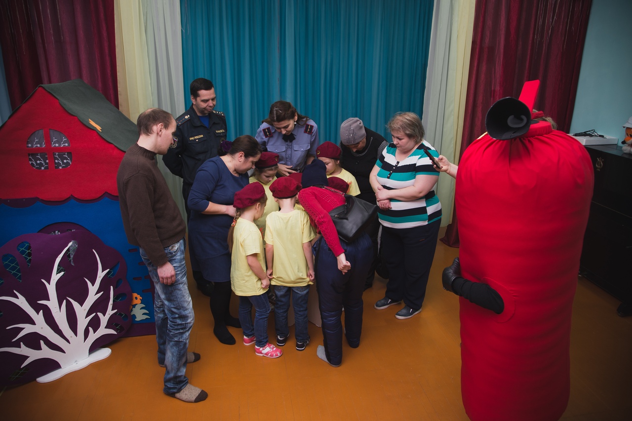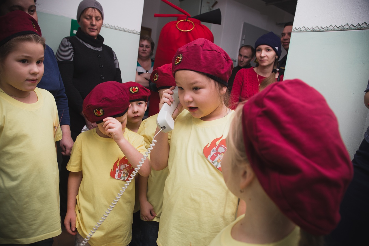 В заключении гости в лице старшего инспектора ОНД и ПР и инструктора по оргмассовой работе, надели боевую одежду пожарного и дали тревогу. Заключительный этап квеста состоял из эвакуации детей из здания детского комбината и проверки знаний действия детей и сотрудников при возникновении пожара в детском саду. Юные пожарные успешно справились и с этой задачей.