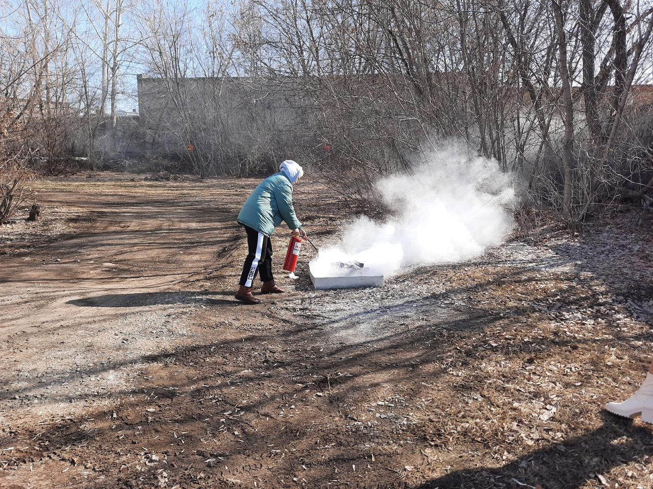 Учащиеся на практике отработали навык применения порошкового огнетушителя для ликвидации пожара на начальной стадии.