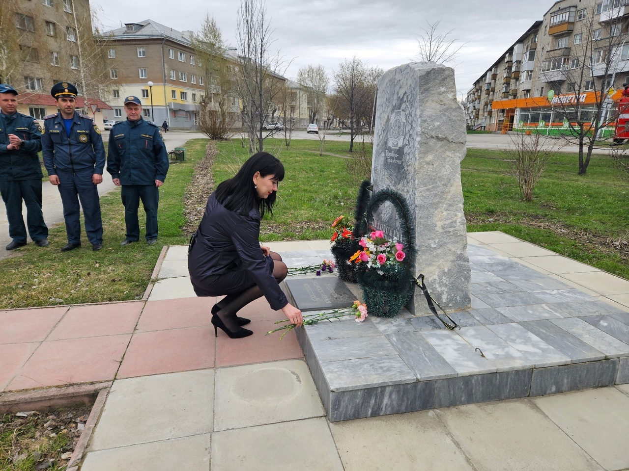 В честь героев-чернобыльцев, сотрудники 117 пожарно – спасательной части и представители Сухоложского районного отделения ВДПО возложили цветы к памятнику «Ликвидаторам техногенных аварий и радиационных катастроф», почтив память минутой молчания в знак признательности погибшим героям, заслонившим мир от ядерной опасности.