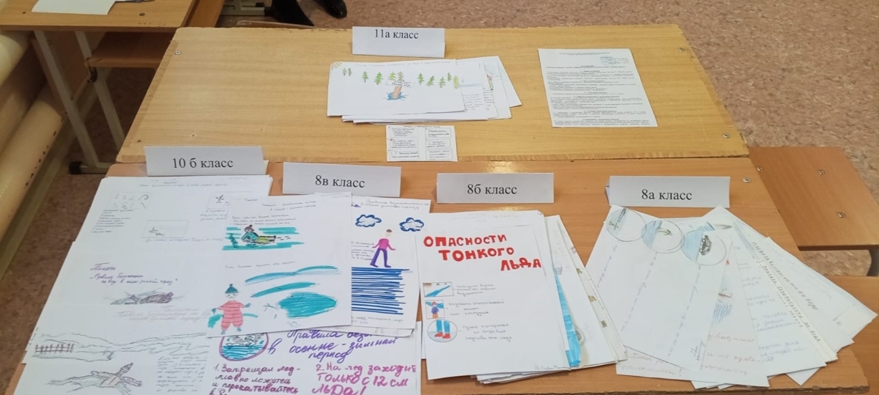 С целью привлечения внимания обучающихся к проблемам безопасного поведения на льду для обучающихся 8, 10, 11 классов проведен конкурс памяток «Правила безопасности на воде в осенне - зимний период», совместно с 117 пожарно-спасательной частью 59 ПСО ФПС ГПС ГУ МЧС России по Свердловской области, Сухоложским районным отделением «Всероссийское добровольное пожарное общество», Общественным советом при ОМВД России «Сухоложский».